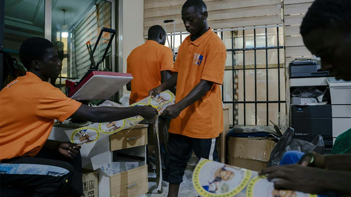 S'il faut passer la nuit ici, on passera la nuit", assure Mme Ndiaye. Après l'arrêt de la production lié au report de l'élection, l'annonce de la date du scrutin a été accueillie avec soulagement, mais le défi est désormais de taille pour livrer les commandes dans les temps. Comme Mme Ngom, tous les candidats doivent s'adapter au nouveau calendrier. "On est en train de revoir toutes nos stratégies, nos supports de communication, renégocier avec nos prestataires en position de faiblesse parce qu'ils savent que nous n'avons pas le choix", souligne Boubacar Camara, un autre prétendant.